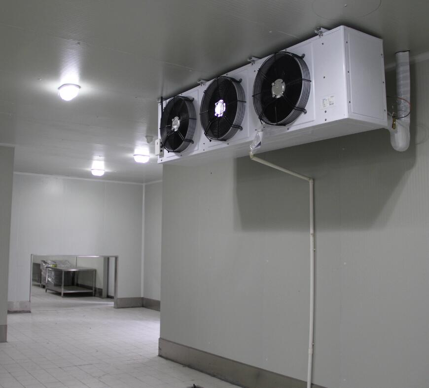 2、1號水果恒溫庫和2號水果恒溫庫制冷系統(tǒng)分別配備的是一套8HP和5HP美國艾默生谷輪中溫渦旋壓縮機組(含冷凝器、電磁閥、壓力控制器等),該機組制冷量大,性價比高,安全可靠。兩間冷庫內(nèi)各配備了一套浙江凱迪系列高效強風型冷風機,該風機運行穩(wěn)定噪音小,送風距離遠,使得庫內(nèi)降溫速度快,極大增強了化霜效果,增加快速對流循環(huán),從而達到每個角落的溫度均勻性。